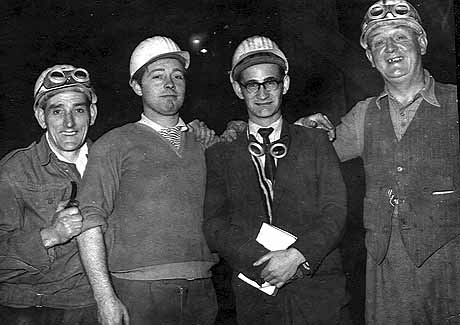 | left to right George Coupland he worked in the pitside on the steelplant,Keith Lancaster who was a stocktaker, and now lives in Canada, and myself Bas Gunn and Ed Jarvis known as Jarvo