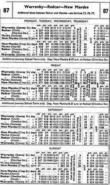 The number 87 bus service was very reliable, it ran from Warrenby through Redcar, Marske and to New Marske,